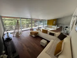 Une mezzanine accueillante, équipée d’un canapé et d’une télévision pour vos moments de détente. Un filet d’habitation tendu au sol offre un espace ludique et original, avec une vue plongeante sur la pièce de vie. Un coin idéal pour lire, se reposer ou simplement profiter de l’ambiance suspendue.